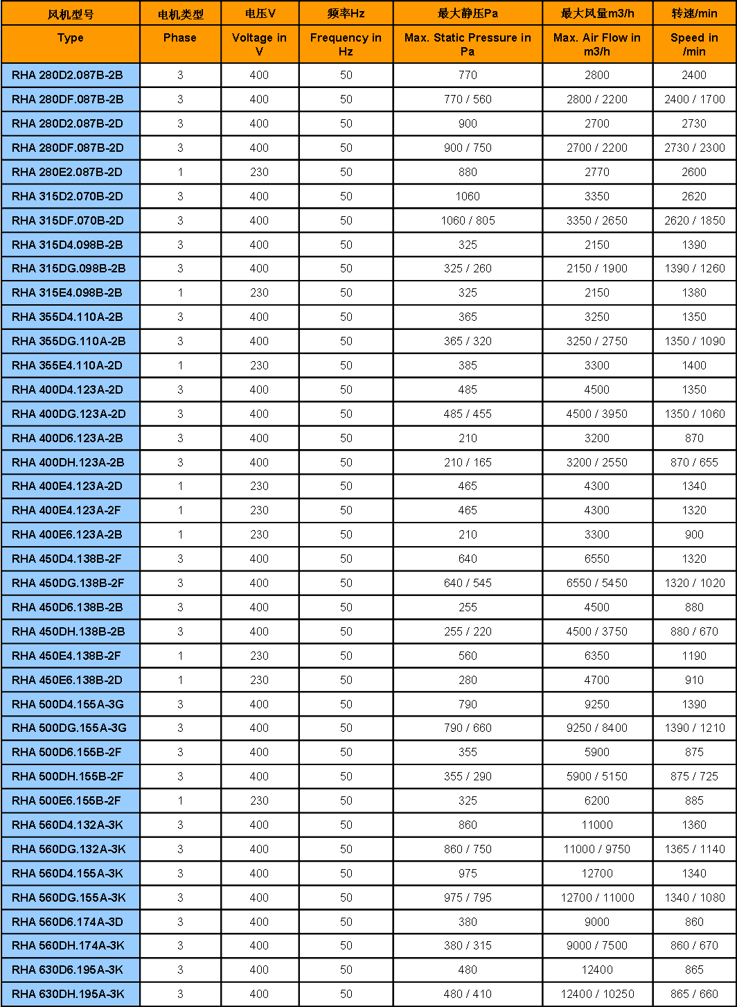 RHA系列 材質(zhì):鋁合金,外轉(zhuǎn)子電機直驅(qū); 葉輪直徑:280-630mm; 最大風量:17000CMH; 最高靜壓:1150Pa