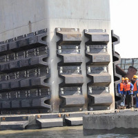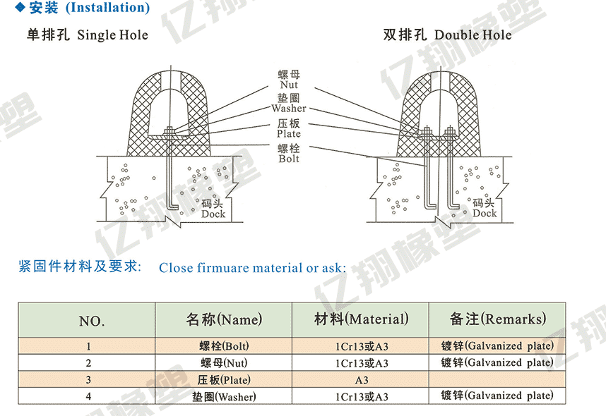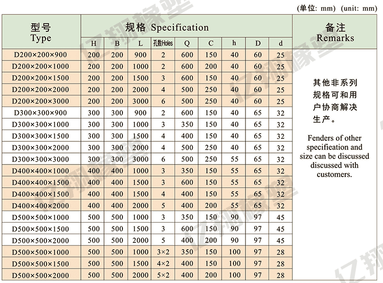 護舷( fender)又稱船的護木,是碼頭或船舶邊緣使用的一種彈性緩沖裝置,有木制的、橡膠的。主要用以減緩船舶與碼頭或船舶之間在靠岸或系泊過程中的沖擊力,防止或消除船舶、碼頭受損壞。 橡膠護舷各種類型及點簡介 1) 圓筒型橡膠護舷 特點:反力低,面壓小,吸能量合理; 在靠泊時,對船舶橫搖和縱搖適應性強 不受船舶大小影響,用途廣 安裝維修方便,特別適于老式碼頭。 2)半圓型(D型)橡膠護舷 特點:反力適中,吸能量較圓筒型高; 安裝較方便工作; 由于底部寬度尺寸小,特別適用于框架式碼頭和船舷安裝使用。 3)O型(Y型)橡膠護舷 特點:反力吸能比D型護舷高; 安裝強度及使用壽命比D型護舷有很大提高; 適用于框架式碼頭。 4)拱型(V型)橡膠護舷 特點:反力適中,吸能量高; 安裝牢固,方便;適用于各類碼頭。 5)DA型橡膠護舷 特點:具有吸能量高和反力低的特點; 制品具有更高的應力分散性,使用壽命長; 前端設置防衛板可降低面壓; 規格齊全安裝方式多樣;更換方便。 6)鼓型橡膠護舷 特點:反力低,吸能量大; 面壓在25噸/米2以下; 傾斜壓縮力學性能降低小; 7)∏型橡膠護舷 特點:反力低,吸能量大; 安裝方便; 一般適合于大中型碼頭。 特點: 1、反力適中,吸能量較圓筒型高; 2、安裝、更換方便; 3、底部寬度尺寸較小,特別適用。