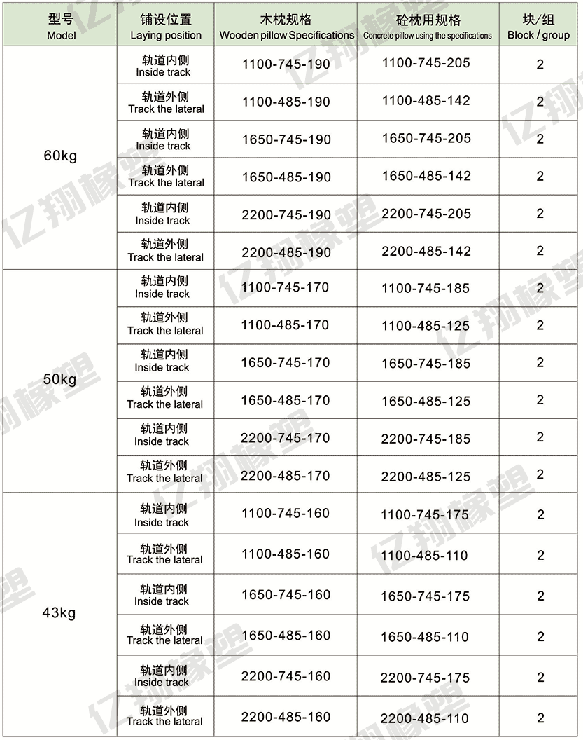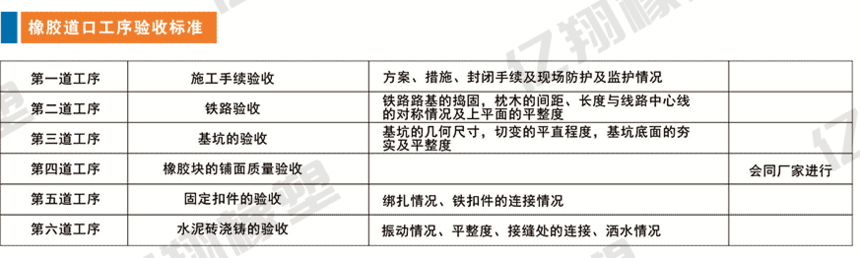 道口板施工標(biāo)準(zhǔn)及有關(guān)技術(shù)是根據(jù)國家、行業(yè)相關(guān)標(biāo)準(zhǔn)及雙方簽訂商務(wù)合同或技術(shù)協(xié)議而定制的。我公司保證按照合作公司要求,分段施工保證生產(chǎn)、交通正常進(jìn)行,并在15天的工期內(nèi)高質(zhì)量的完成任務(wù)。 一、鋪設(shè)橡膠道口板施工前的準(zhǔn)備: 1、所有橡膠道口均采用水泥擋板的形式對橡膠道口板進(jìn)行保護(hù)。 2、道口水泥擋墻的寬慰1000mm,深為500mm,長與公路兩側(cè)路牙齊平。 3、在水泥擋墻和橡膠道口板外側(cè)的接口處采用10mm(厚)x300mm(寬)扁鋼(扁鋼立放)過渡,以保護(hù)水平泥面。 4、在水泥擋墻的上平面一側(cè)和橡膠道口板上平面齊平,另一面與公路上平面齊平。 二、施工前的安全工作: 1、在施工前辦理經(jīng)合作公司上級部門審批的道口施工安全措施,并以書面形式在道口附近張貼公告。 2、施工必須有安全監(jiān)護(hù)人,施工現(xiàn)場的護(hù)欄、指示、防護(hù)旗等必須按安全有關(guān)規(guī)定設(shè)置。 3、在挖水泥基礎(chǔ)或更換枕木時(shí)必須辦理公路封閉或半封閉手續(xù),等更換枕木時(shí)必須辦理鐵路封閉手續(xù)。 4、現(xiàn)場施工還要配備的單相電源和控制開關(guān)。 三、橡膠道口枕木鋪設(shè)標(biāo)準(zhǔn): 1、所鋪道口要求換新枕木時(shí),上平面平整; 2、道口枕木調(diào)整時(shí),要求枕木調(diào)到與鐵路中心路線成直甬,枕木間距中對中550mm. 3、道口上遇有岔道,合作公司現(xiàn)場確定岔道枕木間距但需符合我司鋪設(shè)標(biāo)準(zhǔn),超出的數(shù)量由合作公司承擔(dān)。
